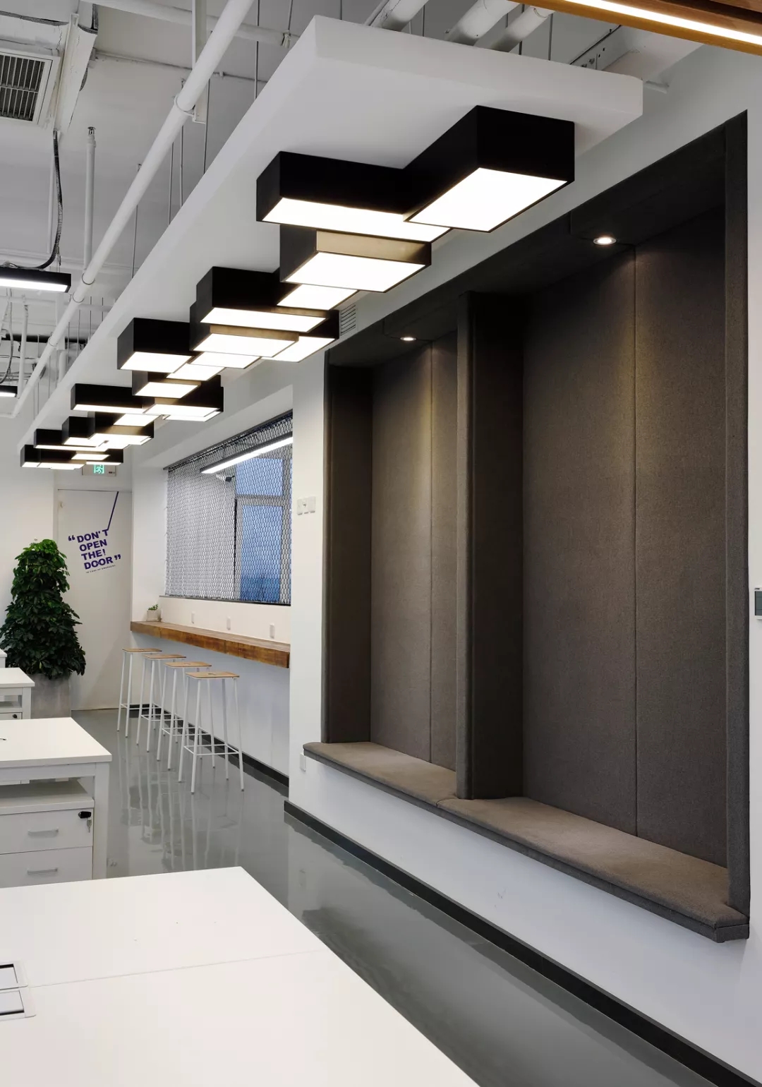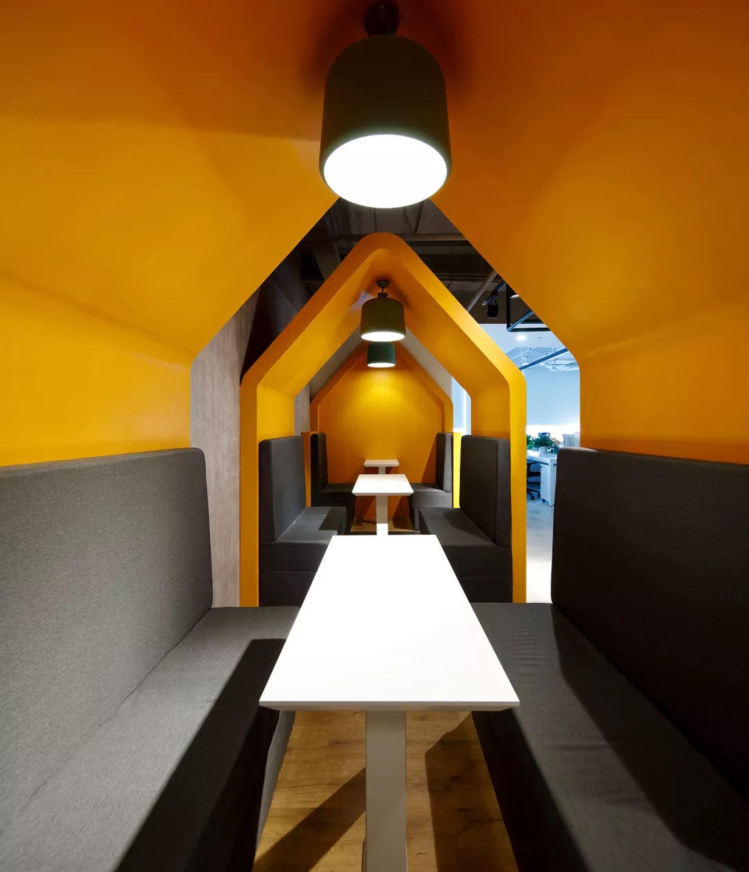 最新完成的整層辦公區(qū)延續(xù)了主體風(fēng)格,少了花俏的點(diǎn)綴,更多地使用色彩碰撞來提振精神,比如亮橙色開放會(huì)議間與品牌VI的臟灰色搭配。也首次嘗試了全白色調(diào)的通透會(huì)議室,算是對極致風(fēng)格的小探索。