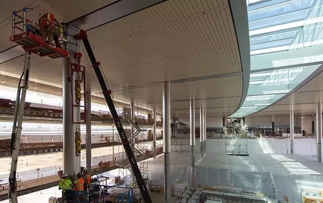 施工中的新蘋果總部,看起來確實(shí)有高天棚的開放式空間