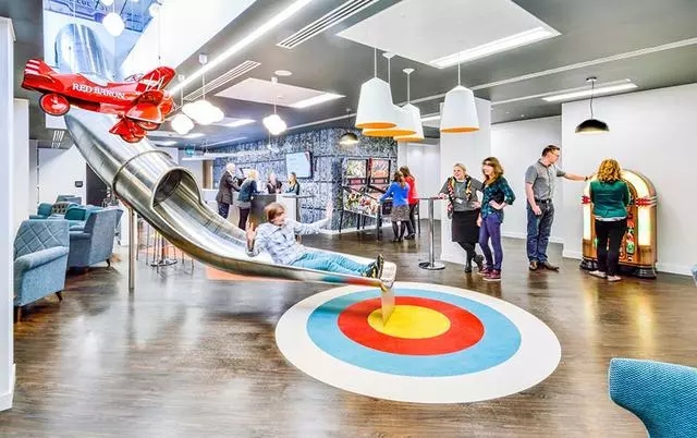 在關(guān)于辦公室的各種新聞里,近年比較讓人喜聞樂見的,莫過于各個(gè)知名公司新更換的總部大樓。連通樓上樓下的滑梯、可以隨時(shí)享用下午茶和簡餐的吧臺(tái)、藝術(shù)廊般的會(huì)議室等等,這些本來不屬于辦公室的生活場(chǎng)景,作為一種創(chuàng)意設(shè)計(jì)開始頻繁出現(xiàn)于南寧辦公室裝修中。