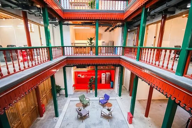 “共享際”是一座原理有點(diǎn)類似青年公寓的共享租房空間,圖為位于前門的打磨場(chǎng)共享際,每間住房為上下兩層的LOFT空間