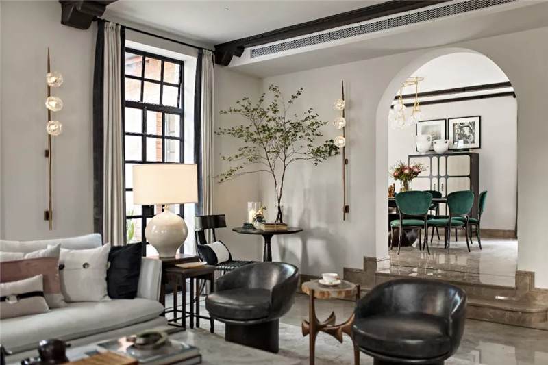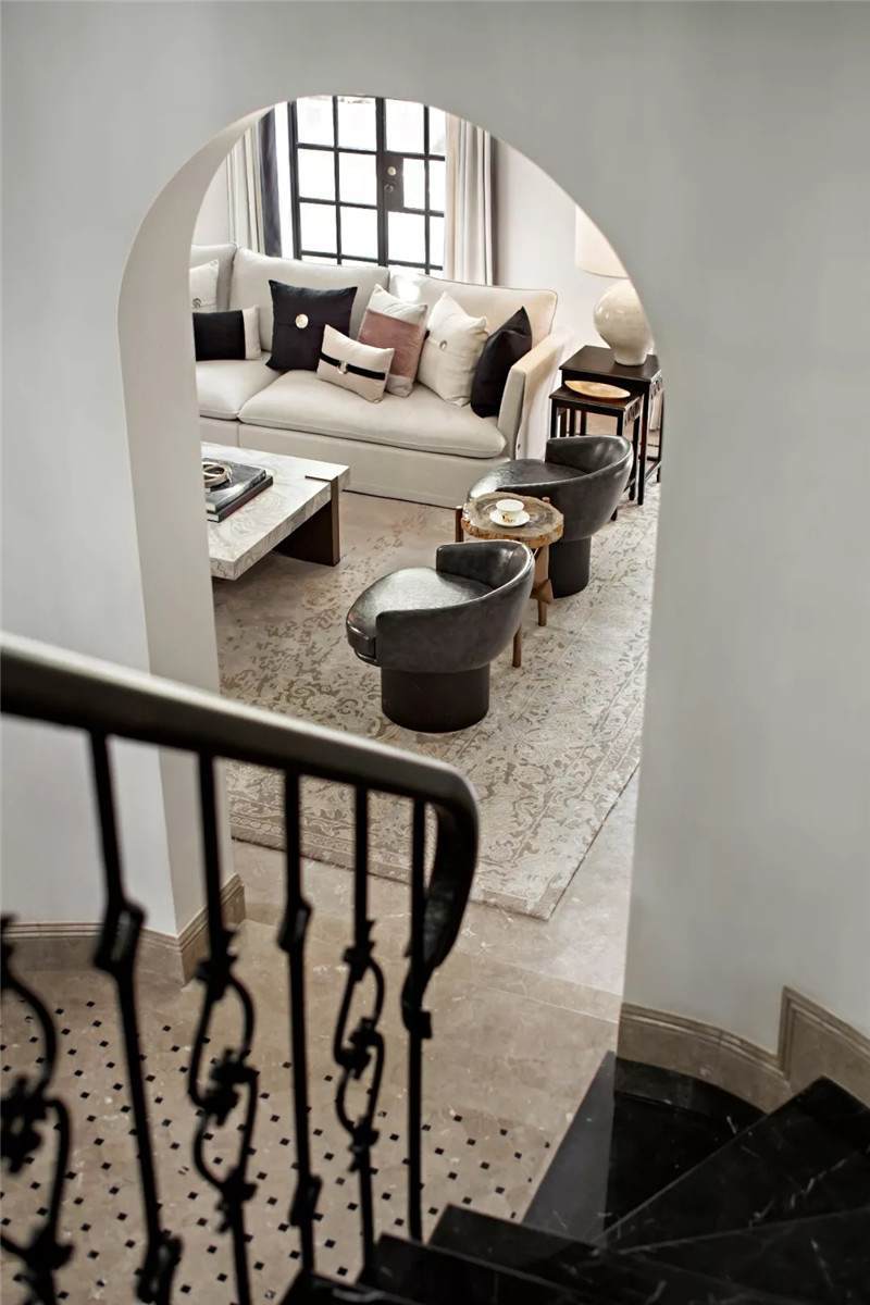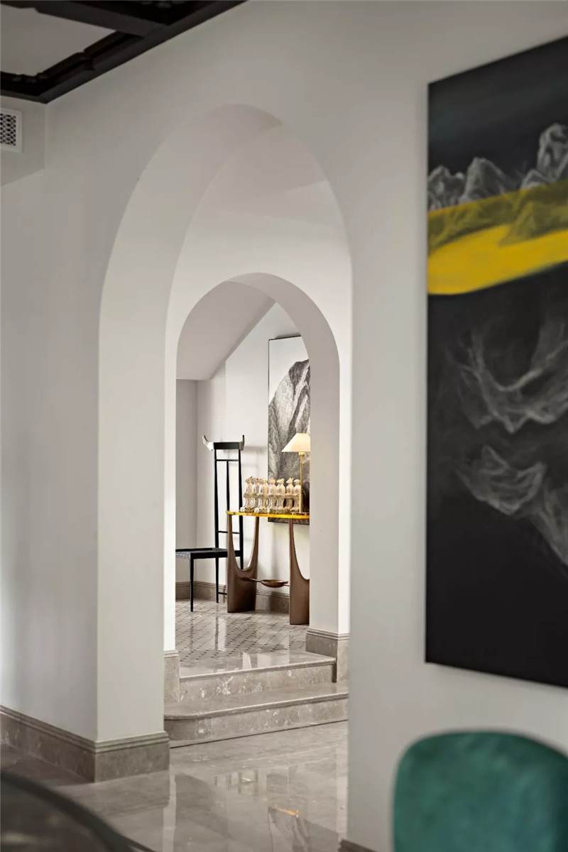從建筑外觀到室內(nèi),拱門設(shè)計(jì)無疑是空間中最引人注目的亮點(diǎn),經(jīng)典的幾何線條在空間交匯處劃下瀟灑自由的一筆,破格又落定,促成雙空間的融合。皆因設(shè)計(jì)師黃全對(duì)細(xì)節(jié)的一絲不茍,每一個(gè)構(gòu)件都在美學(xué)態(tài)度的牽引下找到最合適的表現(xiàn)形式。