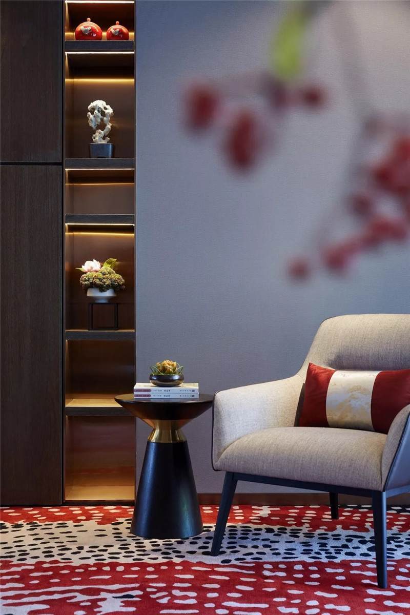 VIP休息室的地毯、擺件則延續(xù)茶室氛圍,細微之間,風雅嫻靜的氣度神韻也升騰而出。