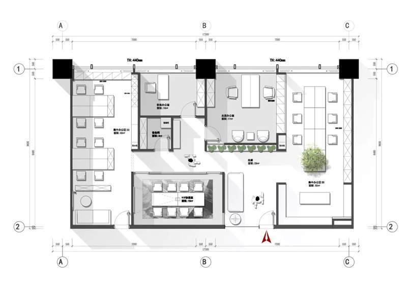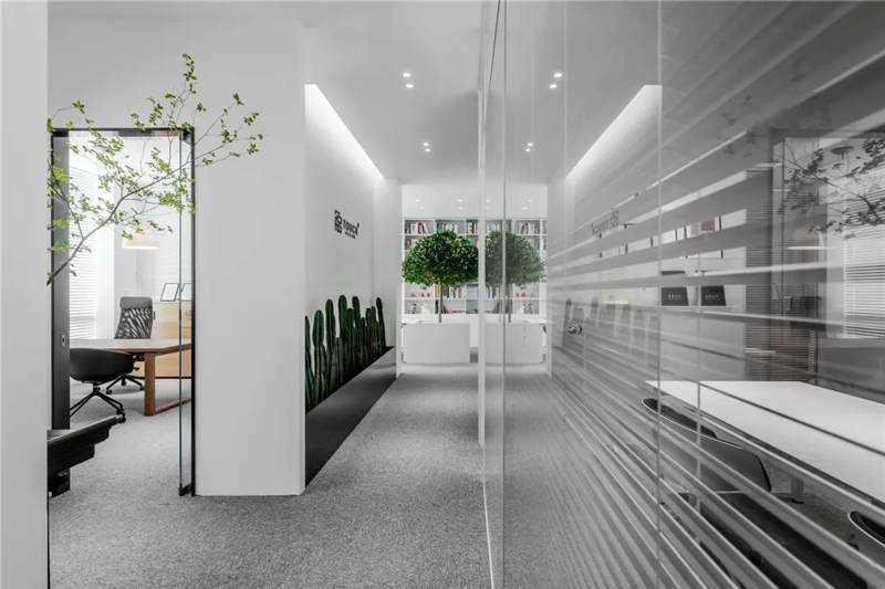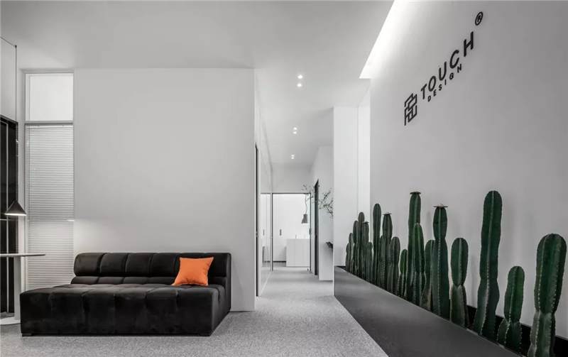 刪繁就簡(jiǎn),以最經(jīng)典的白色為主題搭配色調(diào),沒有繁瑣的設(shè)計(jì)和過多的裝飾,減去辦公中的壓抑感。通過將自然純凈的白色與沉靜黑色相結(jié)合,將品牌形象簡(jiǎn)潔地呈現(xiàn)表達(dá),同時(shí)為左右空間的過渡創(chuàng)建和諧觀感。純白的墻面,接近心靈的澄凈;仙人掌是視覺的焦點(diǎn),恣意生長、堅(jiān)韌、夯實(shí)根基,也正寓意著公司的設(shè)計(jì)理念:有所依、有所仗、有所長。