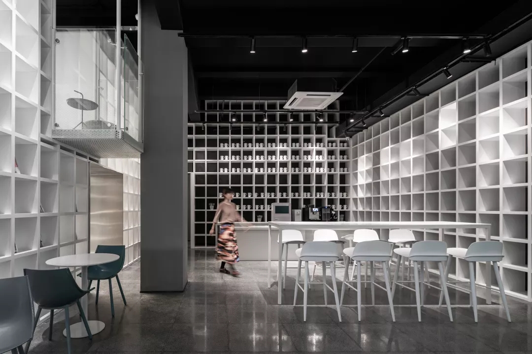 我們遇到的最大抗性是來自非設(shè)計部門的質(zhì)疑,她們要求空間開放,場所要一目了然。這是個多么粗暴而不成熟的想法,房地產(chǎn)的這種簡單毫無生活性的共識已經(jīng)重塑了中國大小城市的居住和展示,這才是我所痛恨的,其實沒有人愿意在眾目睽睽之下和人交流,客廳的開放是針對熟人的,這才是社區(qū)生活和鄰里感情建立的基礎(chǔ)。所以我堅持盒子在空間上的封閉,而在視覺上的半開放,我要在這345平米的小空間里形成層層疊疊的層次和曲折豐富的空間,每個熟人都可以心安理得。
