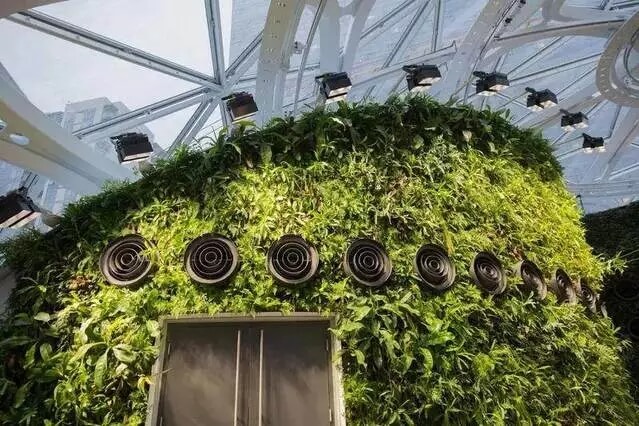 Living Wall 應(yīng)該是 The Spheres 最大的特色,足有四五層樓高,擁有超過(guò) 25000 種植物,被植入 4000 平方英尺的墻內(nèi),是生物多樣性的創(chuàng)新示范,同時(shí)也是亞馬遜園藝學(xué)家 Ben Eiben 的心血結(jié)晶。