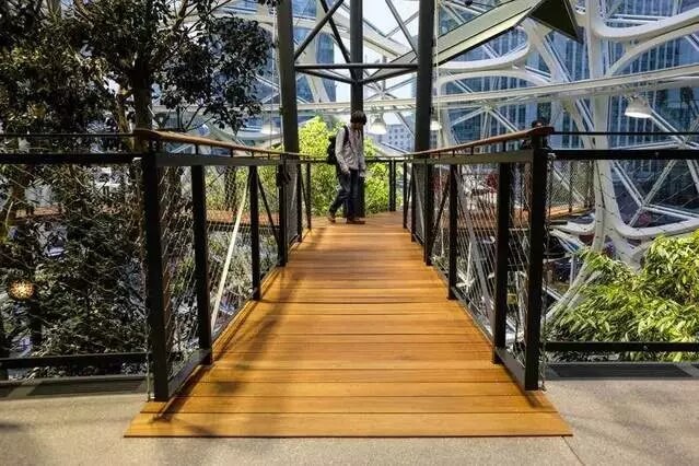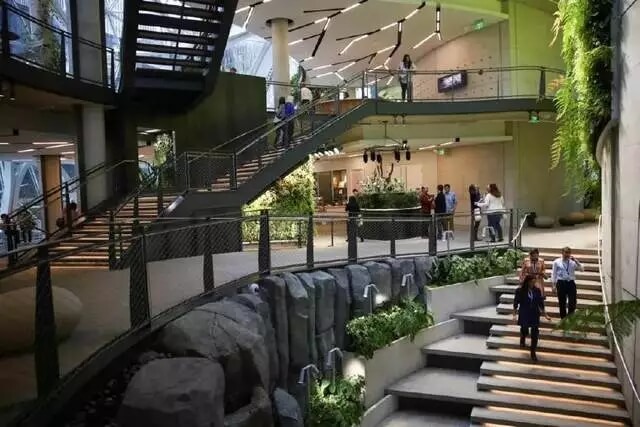 亞馬遜首席園藝師羅·戈里亞多(Ron Gagliardo)說(shuō):“我們把工作環(huán)境和自然聯(lián)系起來(lái),讓大家遠(yuǎn)離普通辦公桌,在這里看不到辦公桌和小隔間。”