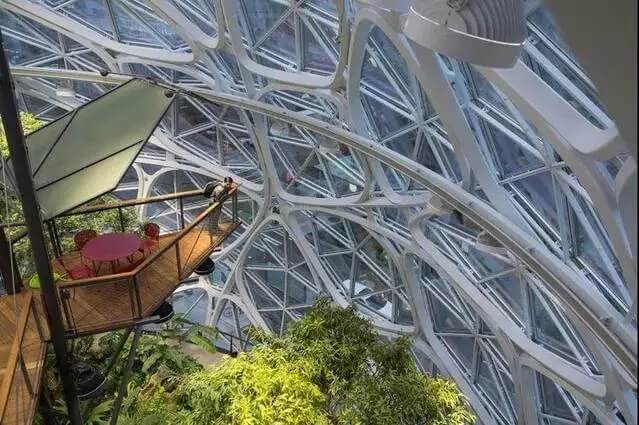 讓他們可以在溪邊的石子小徑上放空自我,在來(lái)自南美的大樹(shù)下閉目休憩。當(dāng)然以高標(biāo)準(zhǔn)的企業(yè)文化著稱(chēng)的亞馬遜,也希望 The Spheres 如此優(yōu)美舒適的生態(tài)環(huán)境能夠讓員工更好地沉思和迸發(fā)出靈感的火花。