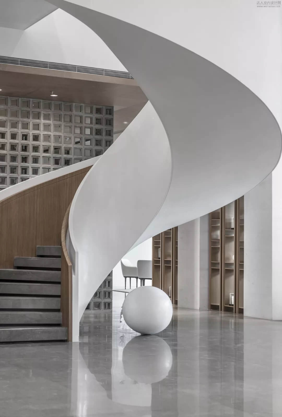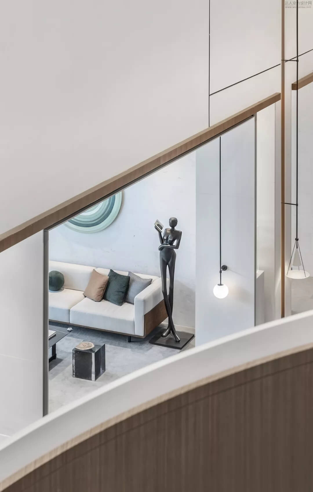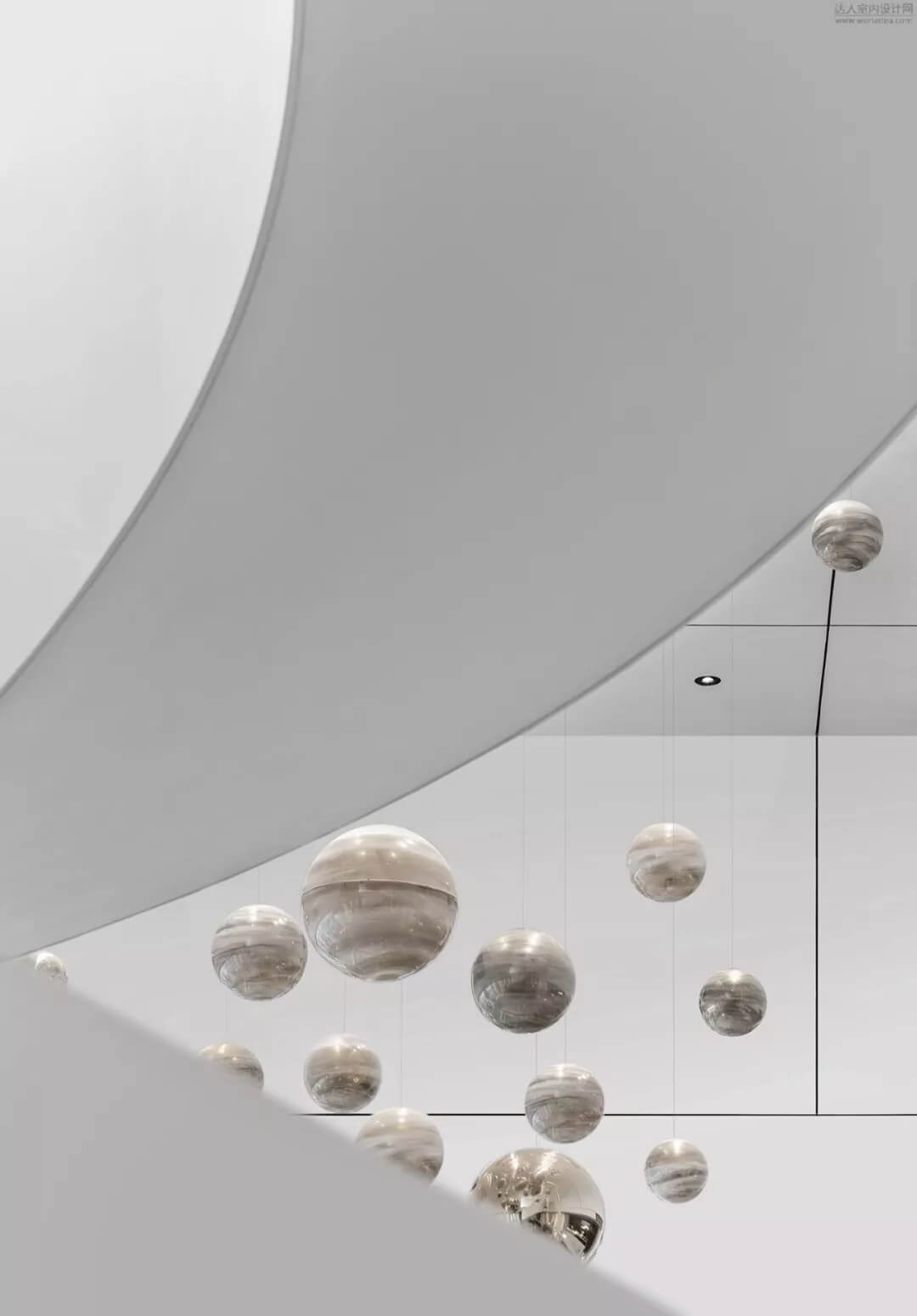 淡雅的白色配以溫馨木色的夢幻般旋轉樓梯入口,白色球體與之呼應,旋轉而上,動態(tài)感的景色盡收眼底,格子狀猶如延續(xù)的·星際穿越,感受平衡時空不同維度的交措時光,身處'空間',在無限與有限中穿梭,不經(jīng)意的轉角余光是同色的球燈相映,優(yōu)秀的設計師是會講故事的人。