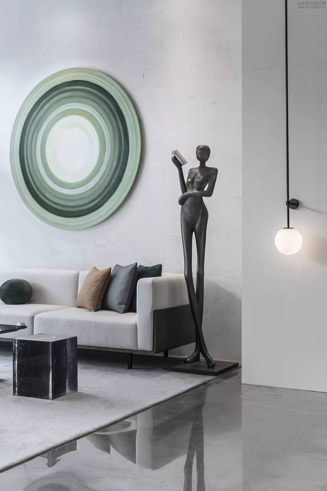 文明的前行離不開知識的積累,時間的沉淀會給人類提供更多的寶貴經(jīng)驗,有心的設計靜立與整個空間,凝結的時間之輪·以樹木年輪為靈感是此處洽談區(qū)的特色,手拿書籍的雕塑予以智慧的氣息的重要性。