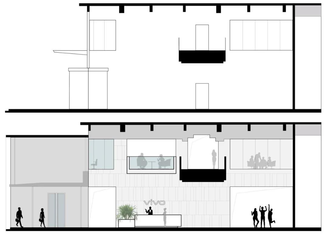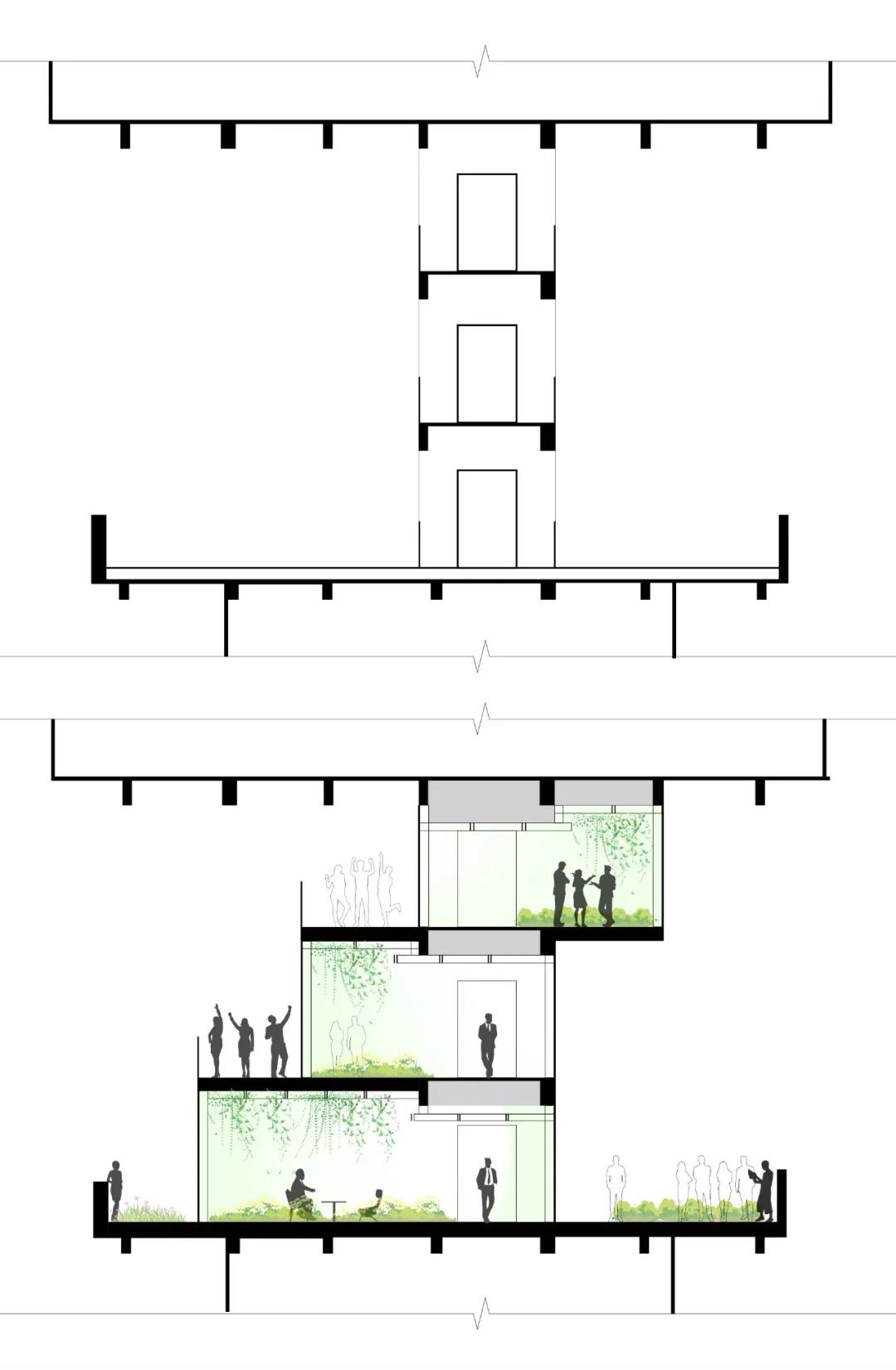 ▲連廊改造前后 剖面對比圖
