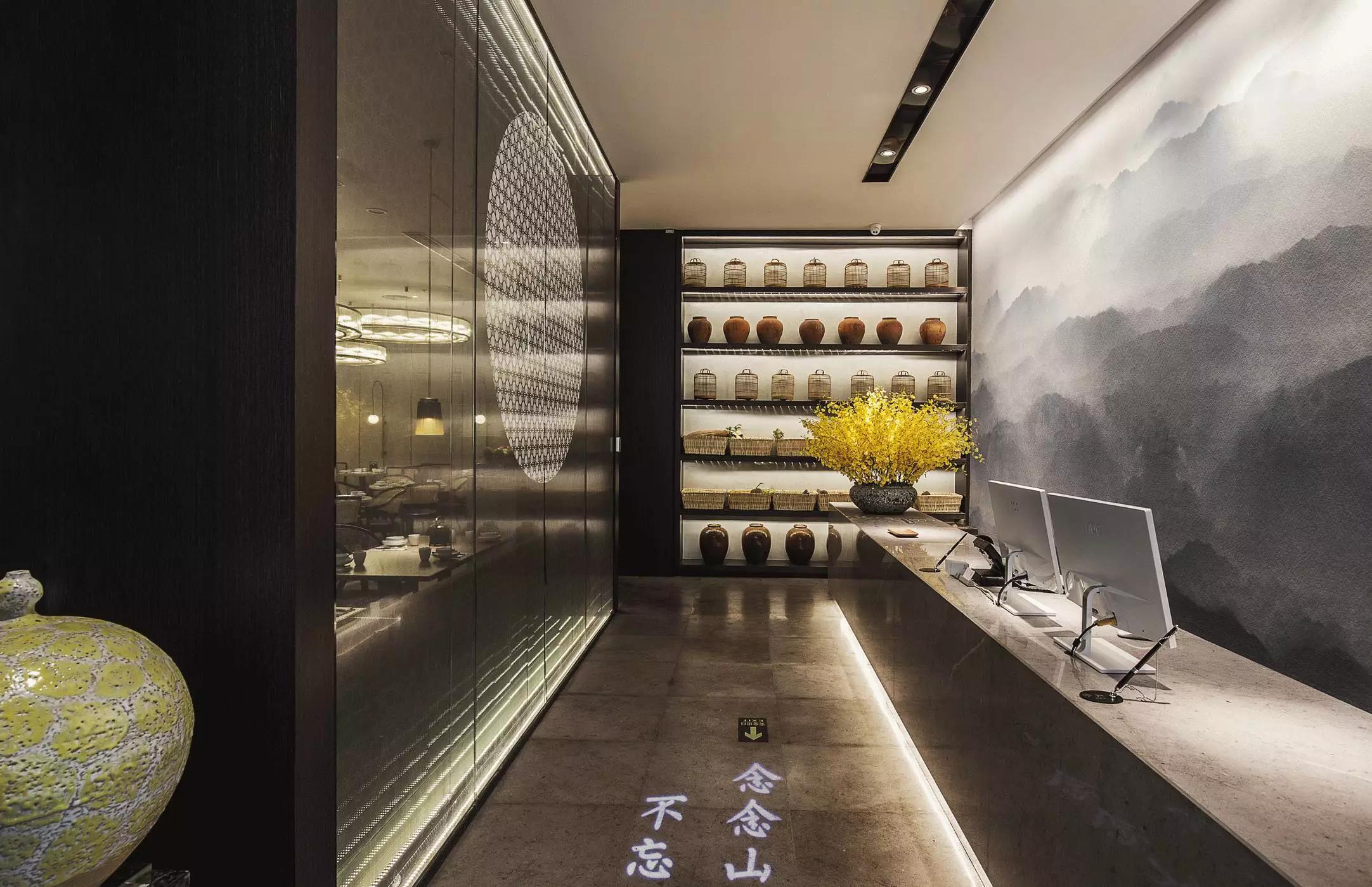 設(shè)計中廣泛使用了灰藍(lán)色調(diào)的石材,地磚,皮革,墻板,結(jié)合清新的藤編,厚重的木材,充滿質(zhì)感的不銹鋼以及別致的燈具和光線,讓整個空間既清新優(yōu)雅又不失質(zhì)樸,讓人雖身處鬧市卻仿佛置身于海的廣渺與山的深幽,又始終籠罩在一層淡淡的氤氳不去的“鄉(xiāng)愁”之中。